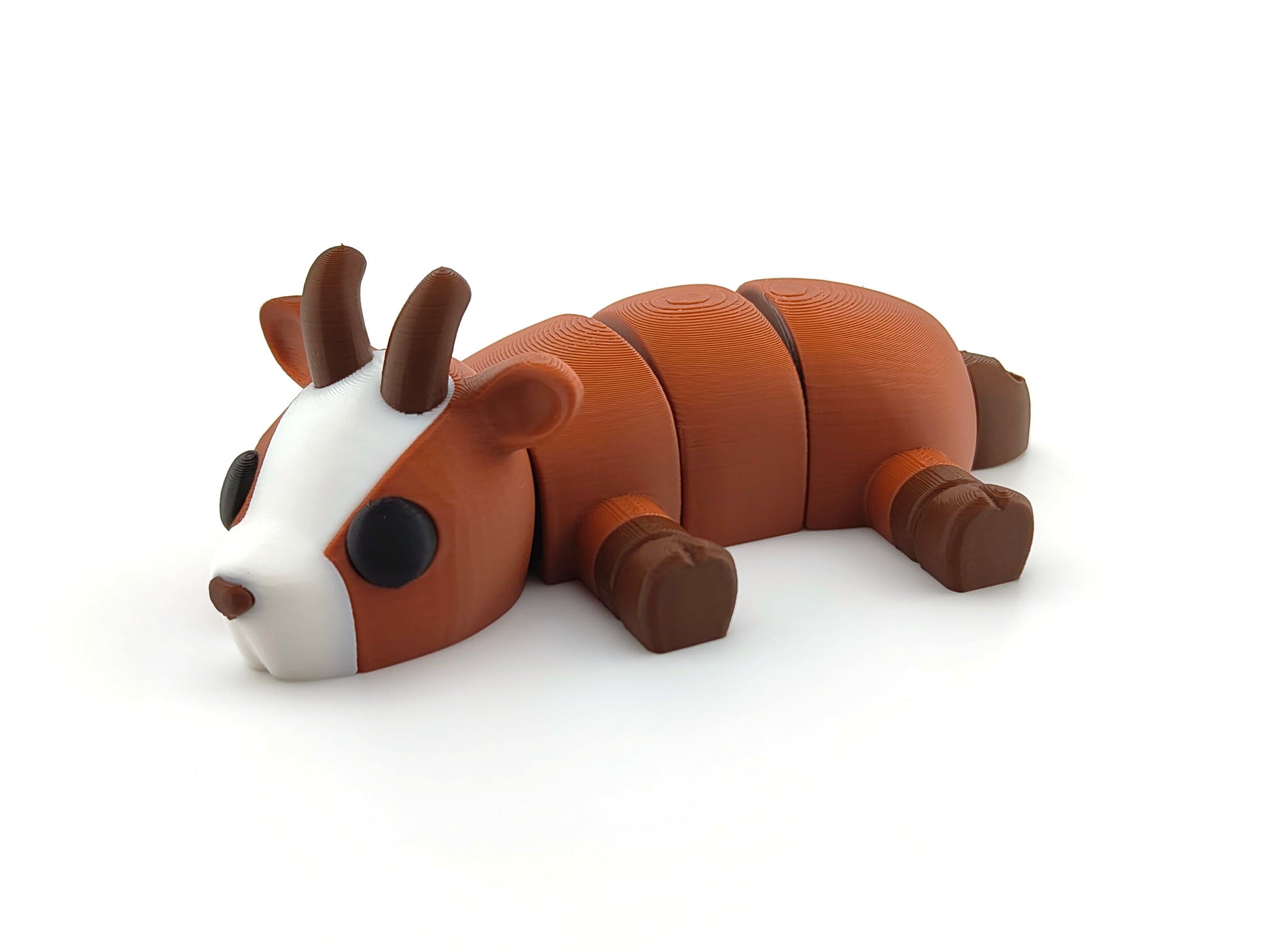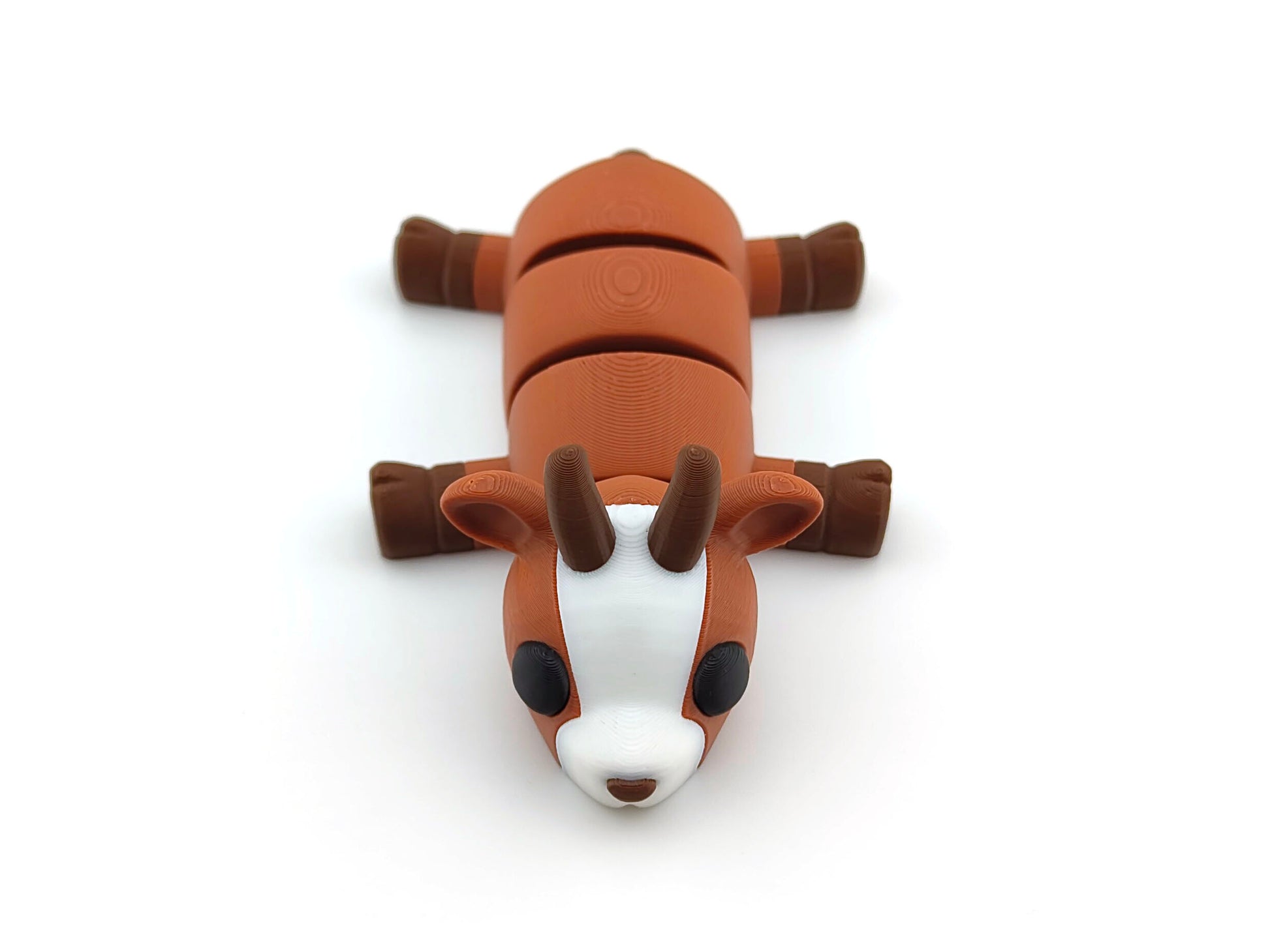 This quirky goat is designed to lie flat in a relaxed pose, capturing the mischievous and energetic nature of these beloved farm animals. Crafted with precision using high-quality filament, it features four movable joints: the head, upper body, lower body, and back, allowing for subtle positioning while maintaining its charming stance.